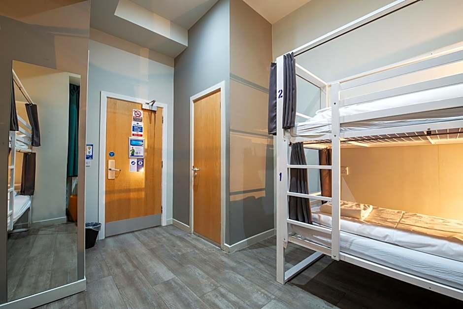 The dormitory room features a wardrobe and parquet floors, as well as a private bathroom boasting a shower. The unit has 4 beds.